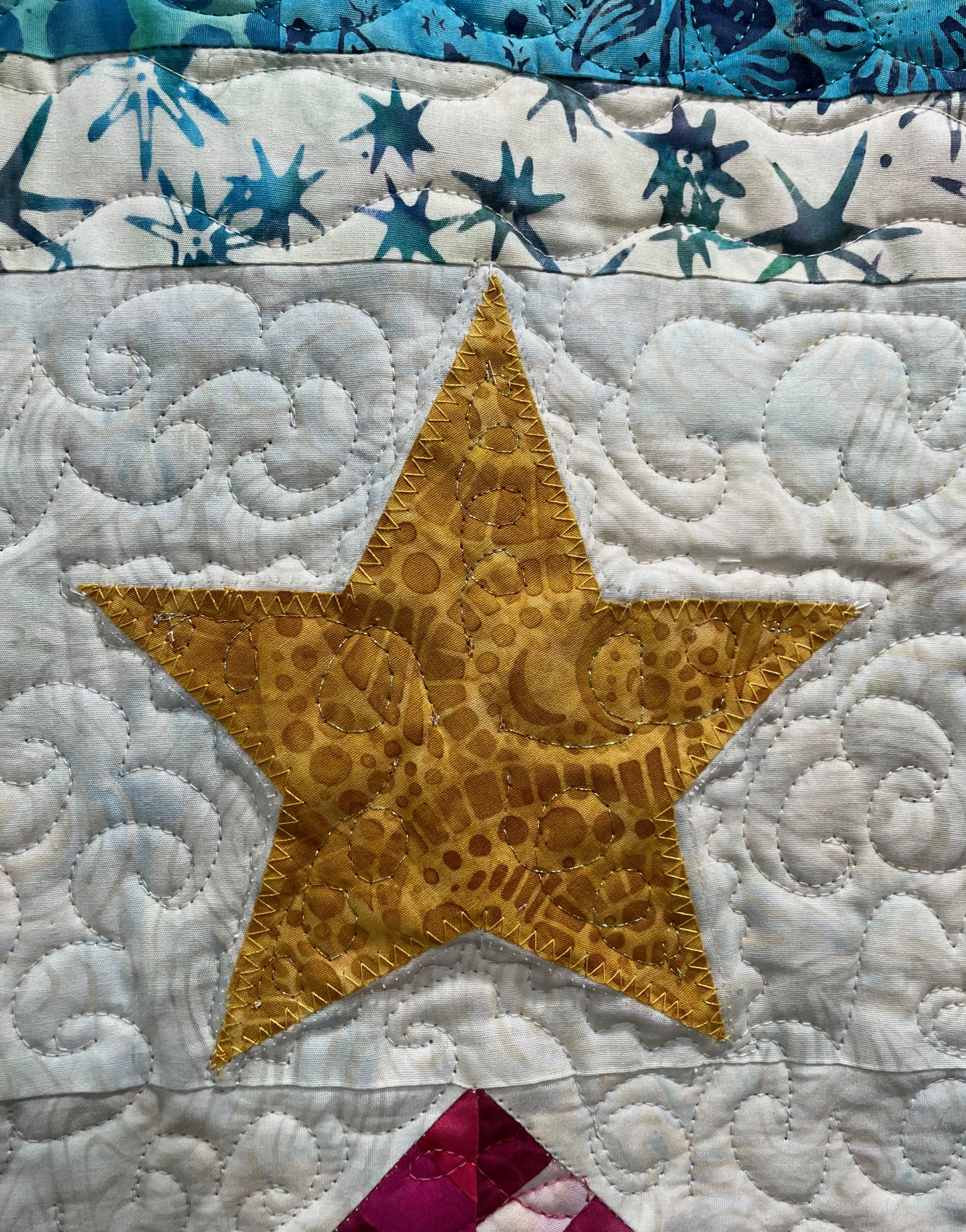 I did keep the Under the Sea fabric for the first border. I also included 4 fabrics from various Island Batik collections in the second border (although you don’t see them in the above image).