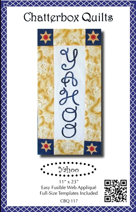 To celebrate this yearly extravaganza, I've created "Yahoo", a fusible web appliqué wall hanging. At 11" x 23" it's perfect for any wall and takes no time at all to create.